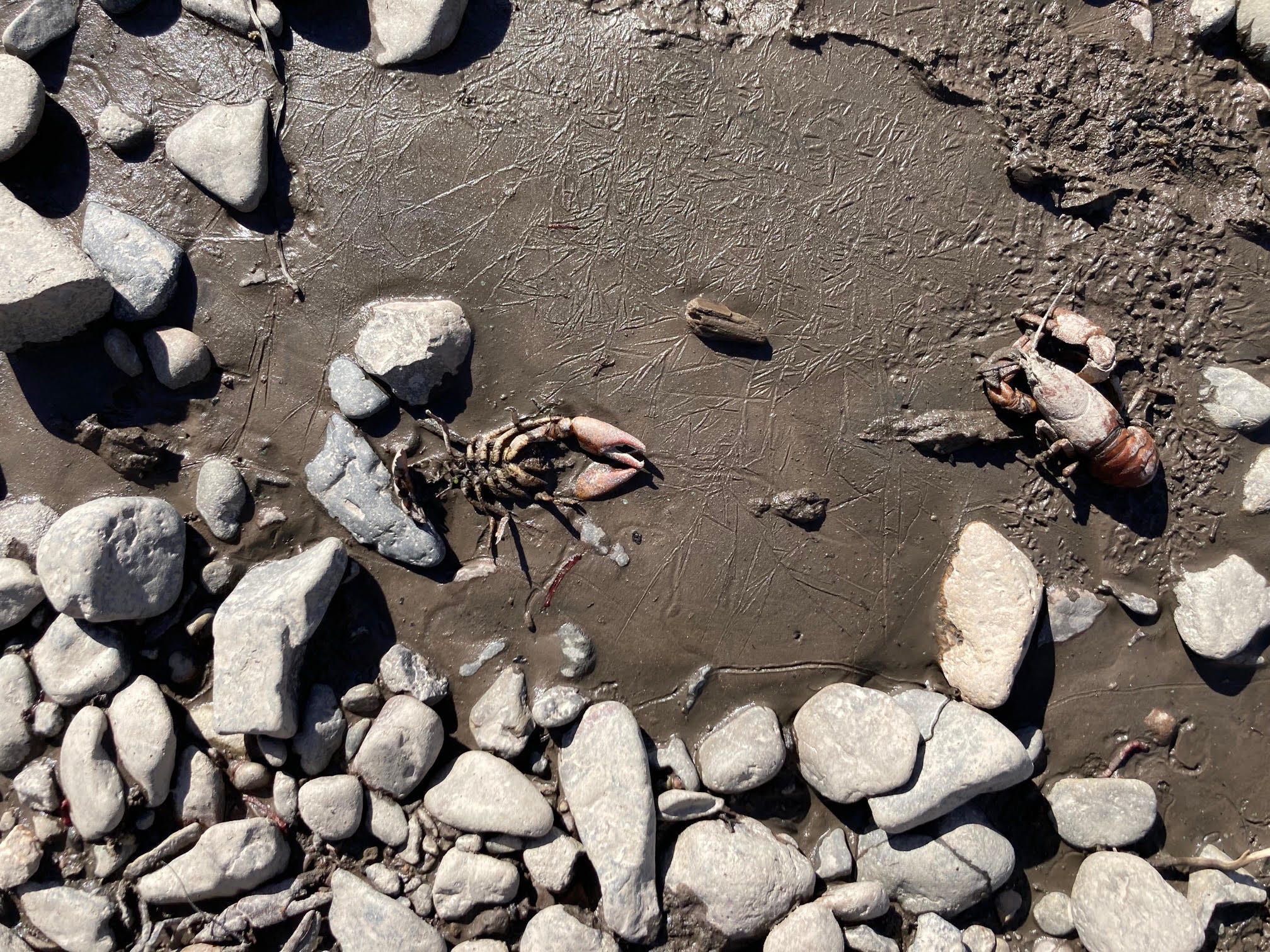 By KRRC’s own estimate, 5-7 million cubic yards of that sediment was released into the Klamath River during initial drawdown. For several months, suspended sediment levels in the river varied from 2,000 to 16,000 milligrams per liter3 over a stretch of at least 60 miles—levels that are approximately four to 30 times what juvenile salmon can survive.4 Dissolved oxygen hit zero twice. Millions of native species were killed in and along the river; the entire food web has been destroyed. Wildlife were bogging down and dying in the footprints of the reservoirs, as well.