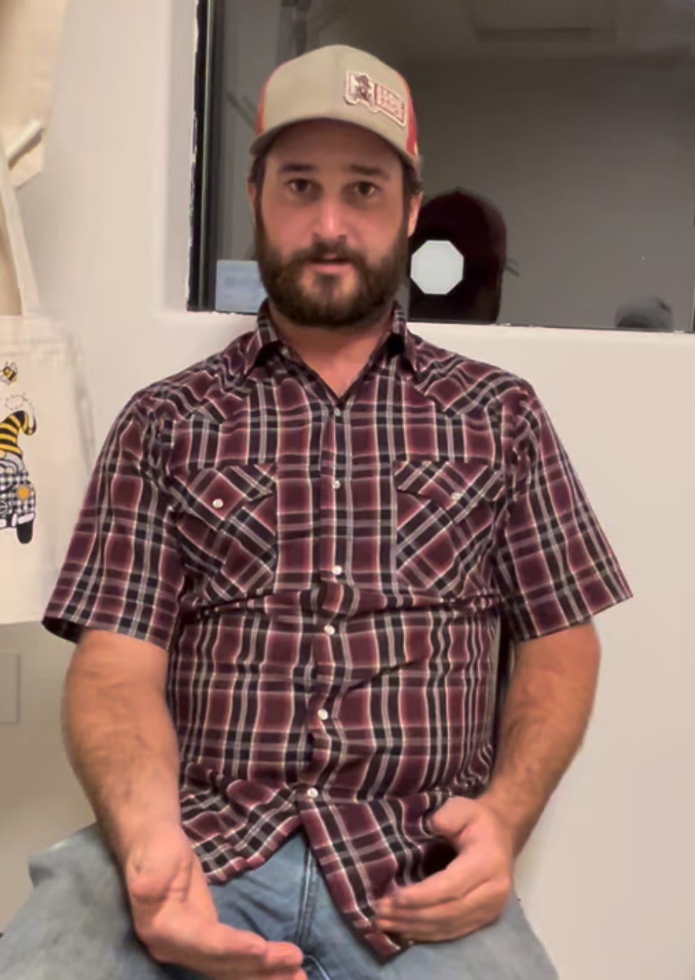 At a letter writing event at Headwaters Cafe in Potter Valley, sixth-generation cattle rancher Matthew Delbar explains how these water cuts would affect ranching in the valley.