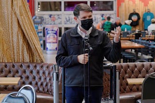 Talarico tells crowd he’s running a “non-meat” campaign.